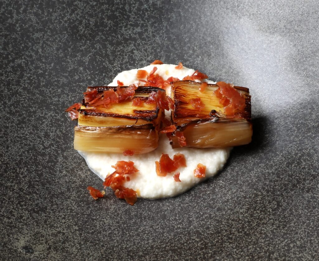 Puerro asado – crema de almendra