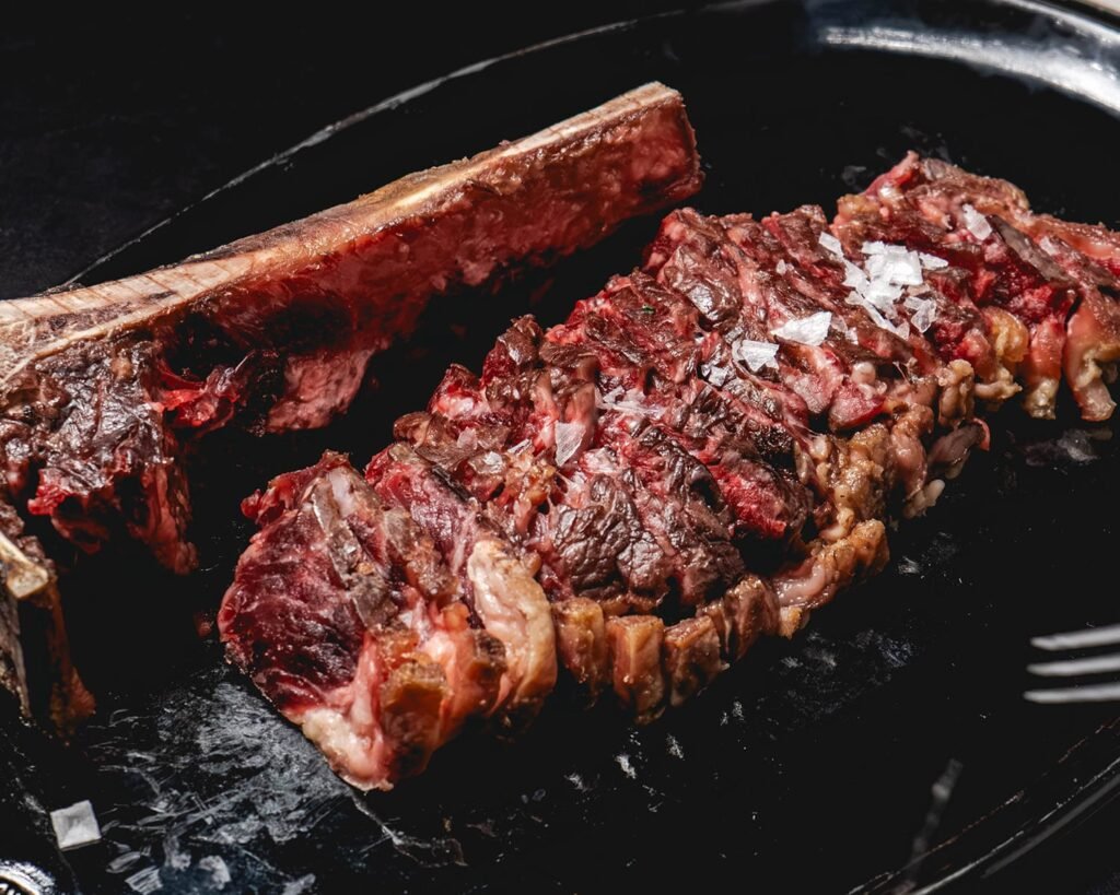 Lomo bajo madurado Black Angus (250 grs aprox por persona) con guarniciones
